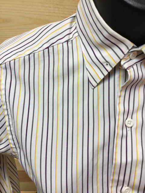 Shirt - Long Sleeve white with yellow charcoal and navy pinstripes by Carl Meyers