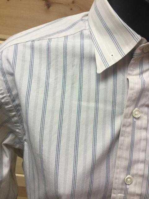 Shirt - Long Sleeve cream w/ teal & purple pinstripes by Carl Meyers