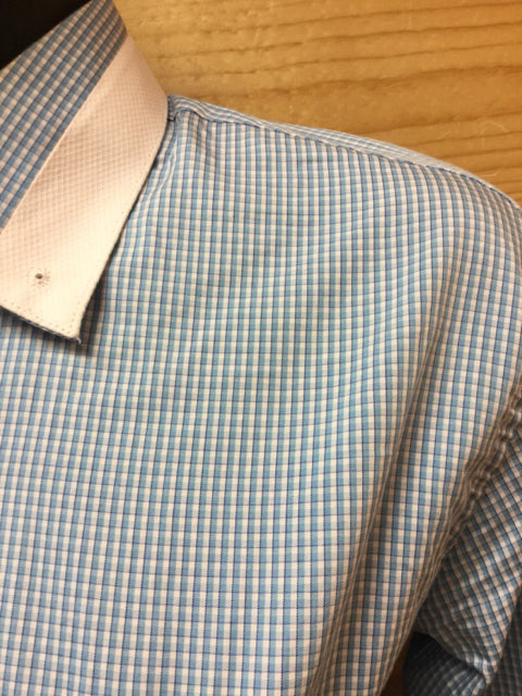 Shirt - Long Sleeve blue turquoise plaid w/ white collar & cuffs by Marsha DeArriaga