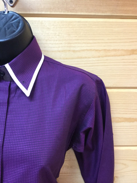 Shirt - Long Sleeve purple sheen w fuchsia check by Marsha DeArriaga