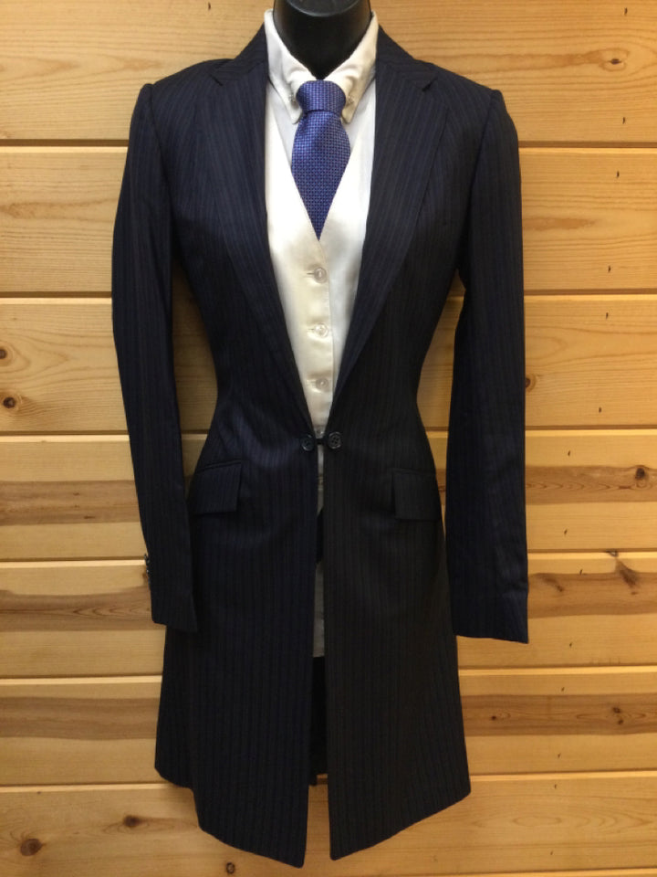 NW-- Nape to Waist: Measuring from the back, take tape from the bottom of the collar to the natural waist (on an existing suit, measure to the"arrows" at the top of the pleats).