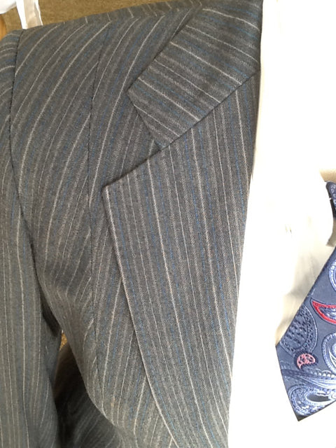 Habit charcoal w/ silver & blue pinstripe